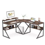 55″ Reversible L-Shaped Desk with Wireless Charging & Shelves