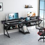 Gaming Desk, 102″ Two Person Computer Desk with Shelves