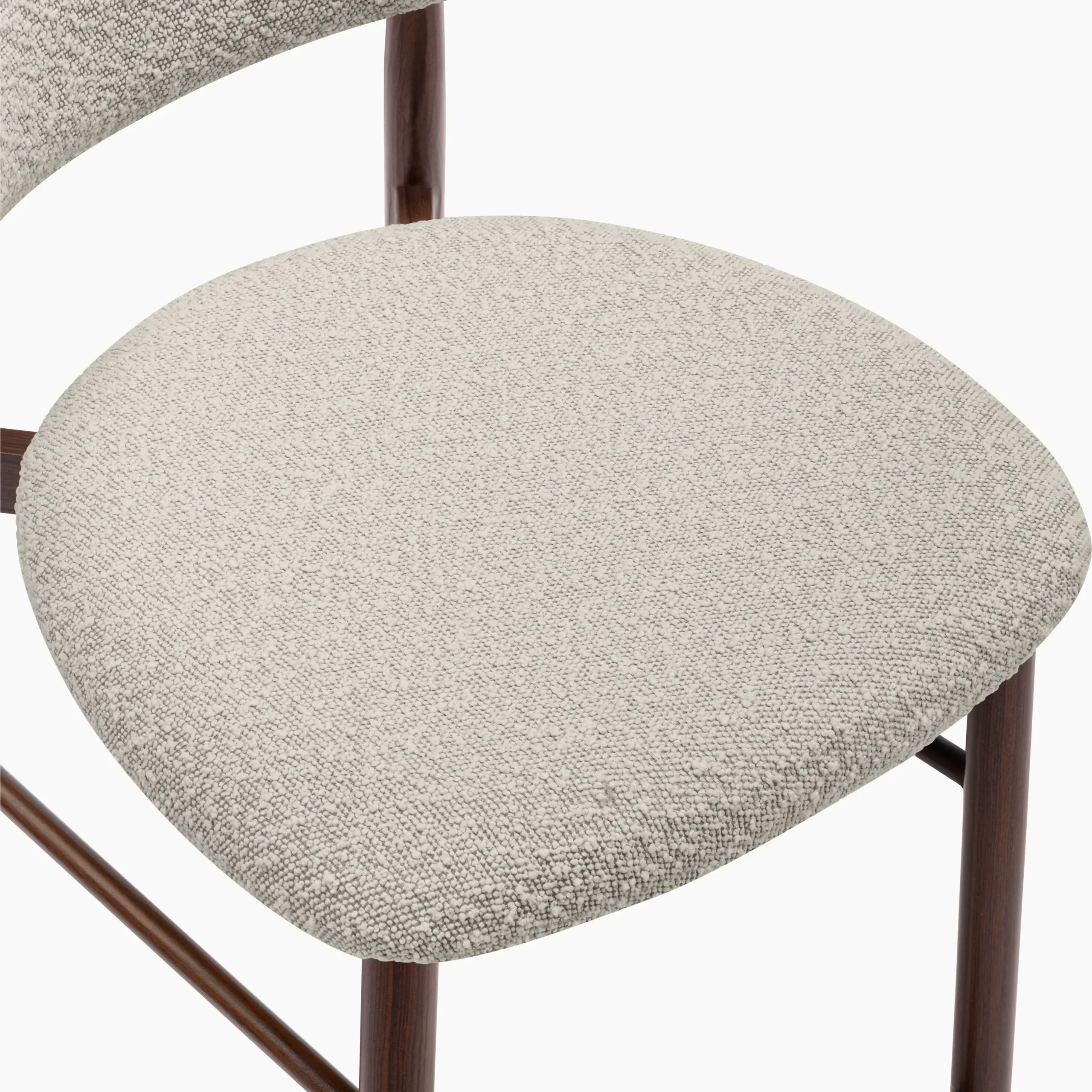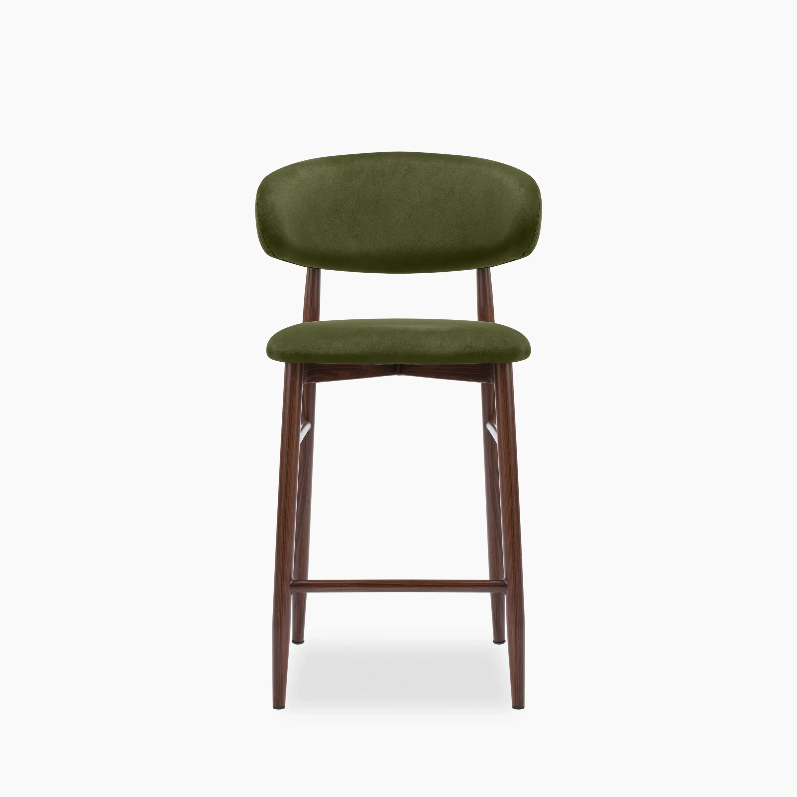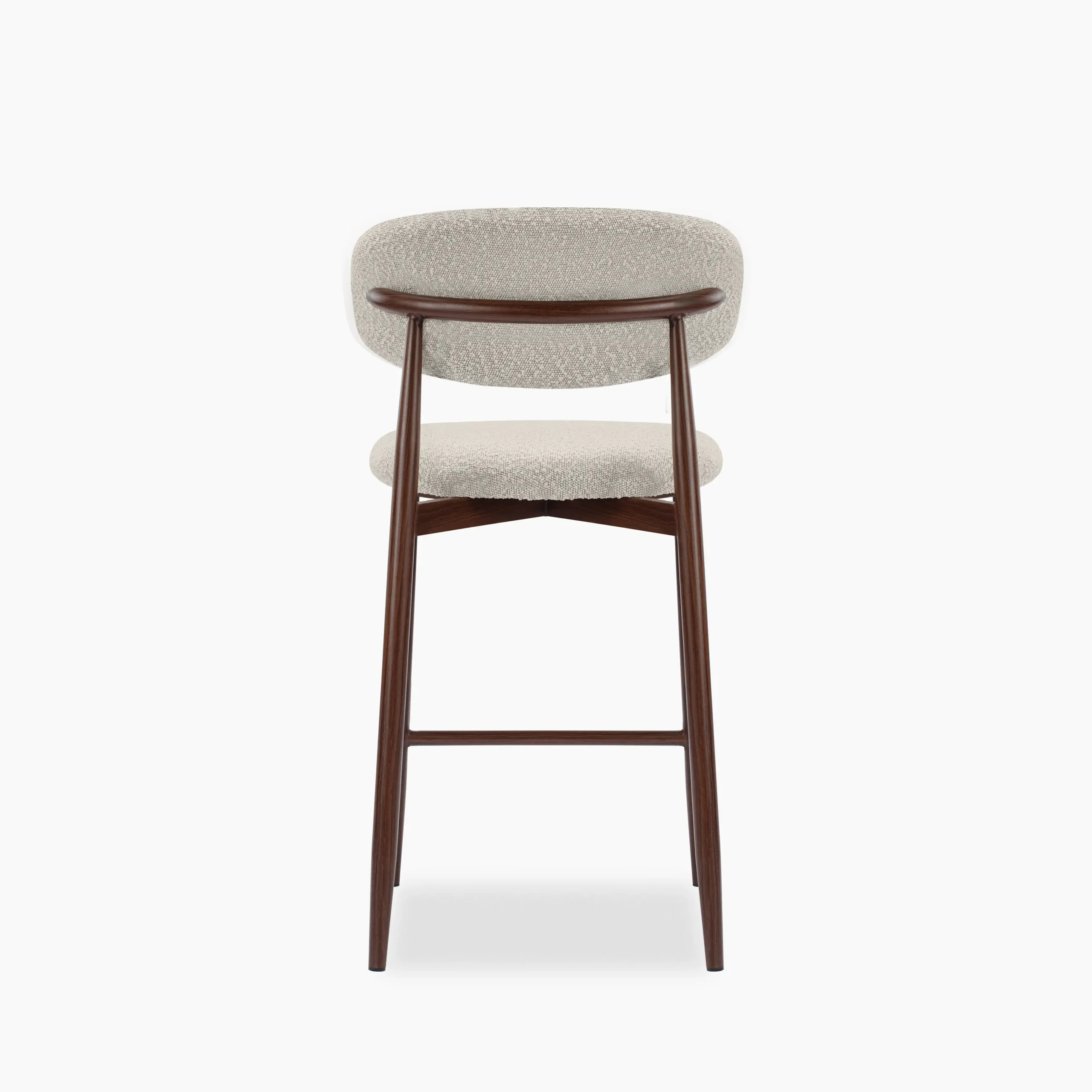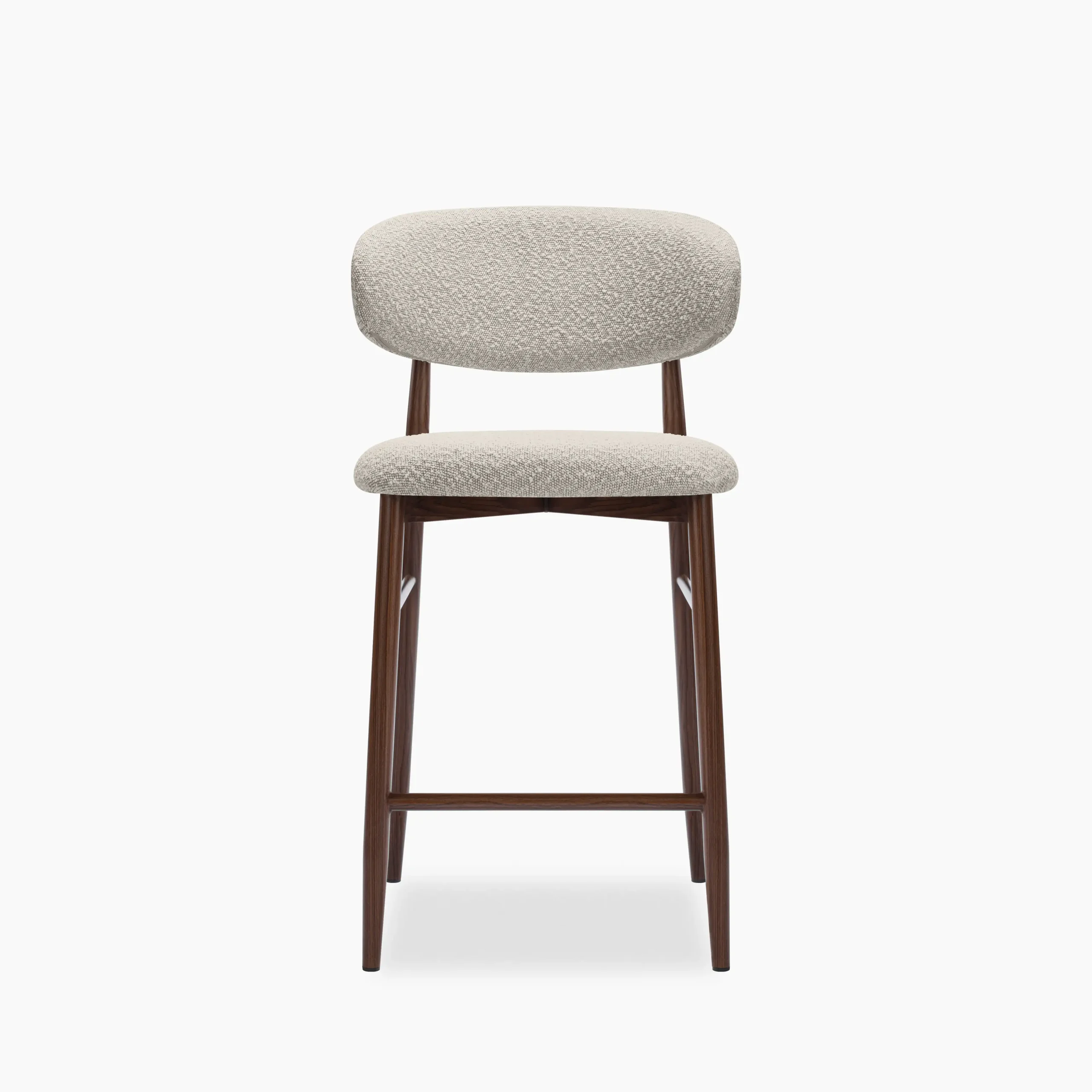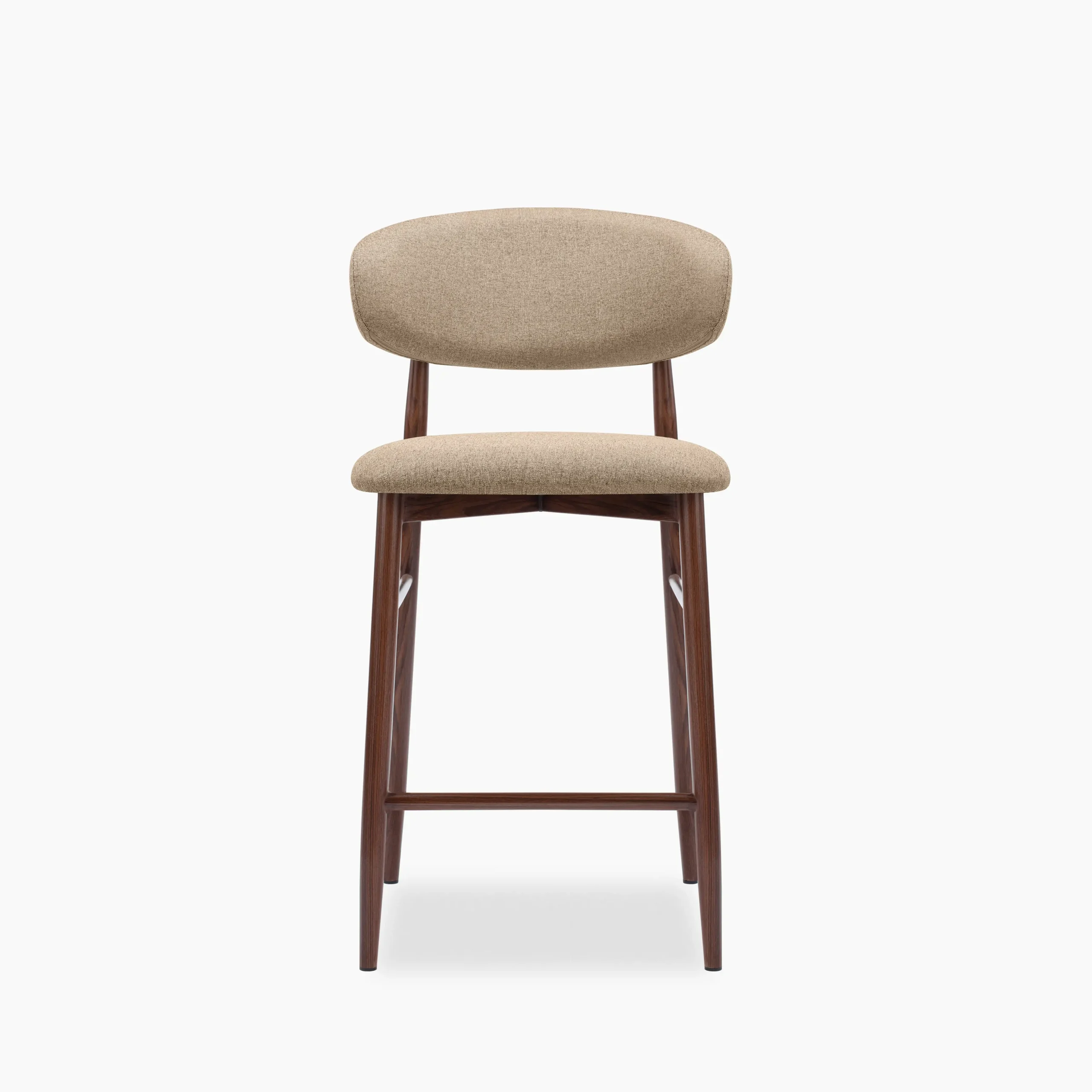The harmonious blend of Nordic and Mid-Century in the Halston Kitchen Bar Stool makes it an irresistible option for kitchen counters. The curved frame has a walnut effect finish and is cross-fixed, making the Halston durable and long-lasting for a high quality finish built to last. Crafted for comfort, the seat is upholstered in sustainably-sourced fabric, soft and textural to the touch, in a light brown and cream hue. For a rich depth of colour and unique softness, our fabric used in this stool is not only of the highest quality but it is made from 100% recycled PET yarns so it is kinder to the environment too.