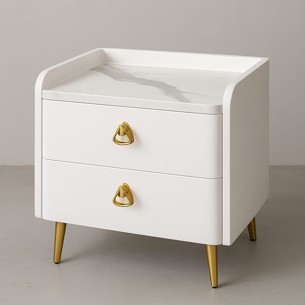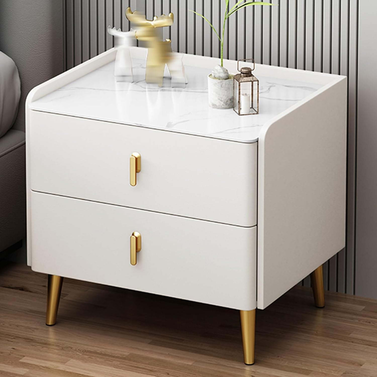 White Bedside Table with 2 Drawers Nightstand with Slides Modern Style Bedside Tables 40x40x50cm for Living Room Hallway Bedroom Office