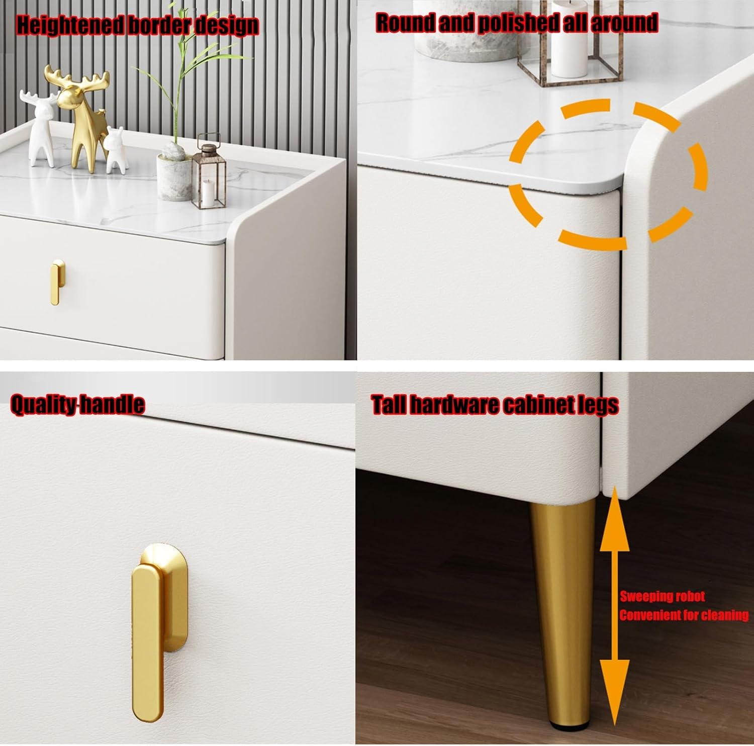 - Sturdy and Durable The modern bedside table is made of natural solid wood. Solid wood drawers with metal feet, sturdy and stable, with strong load capacity. The outside is wrapped in leather, waterproof and easy to clean, also it has a swing table that is heat-resistant, abrasion-resistant and scratch-resistant. It is your reliable companion for many years.