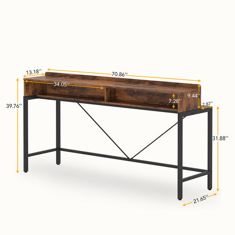 Console Table, 70.9″ Sofa Bar Table with 2-Tier Open Shelves (No Stools)